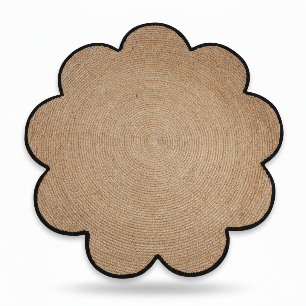 Chic Scalloped Jute Area Rug - Flower Shape with Black Border || GERA 202504