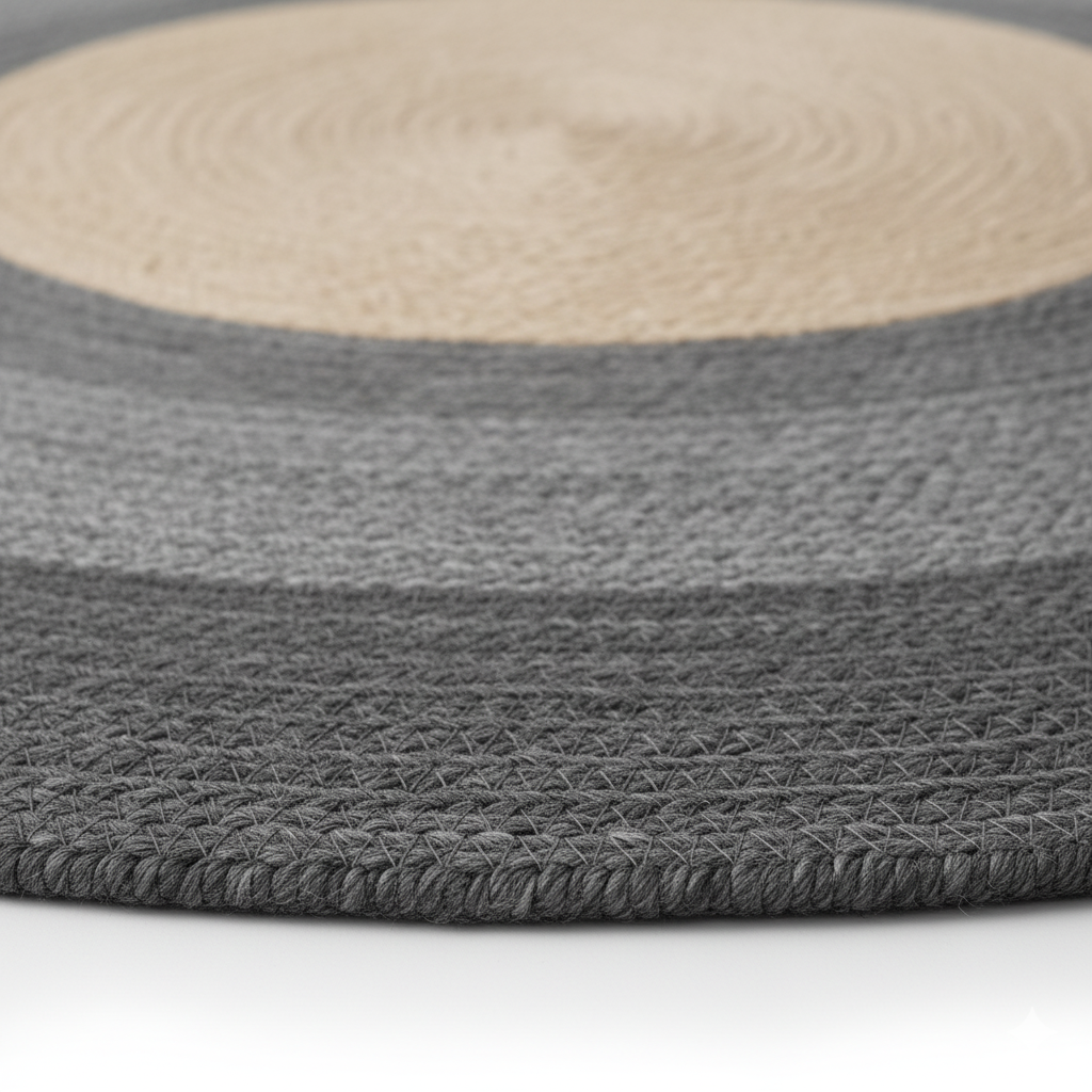 Modern Ombre Round Jute Rug - Natural, Mid-Grey, & Charcoal Tri-Tone || GERA 202505
